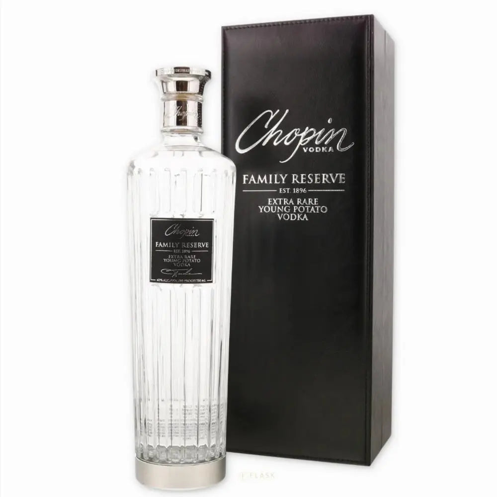 Explore the distinction of Chopin Vodka Family Reserve, the world's first rested, super-premium potato vodka. This exceptional spirit represents a once-in-a-decade discovery from Chopin's estate in Poland. Crafted from the finest potatoes and rested in 50-year-old oak barrels for two years, this remarkable vodka showcases the art of fine distillation at its highest level. With its smooth texture, clean taste, and luxurious flavor profile, Chopin Family Reserve elevates any occasion.